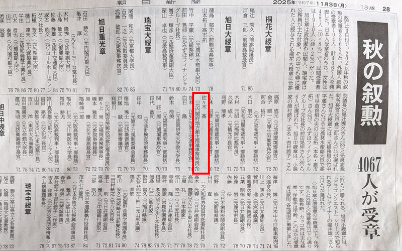 | 秋の叙勲 |